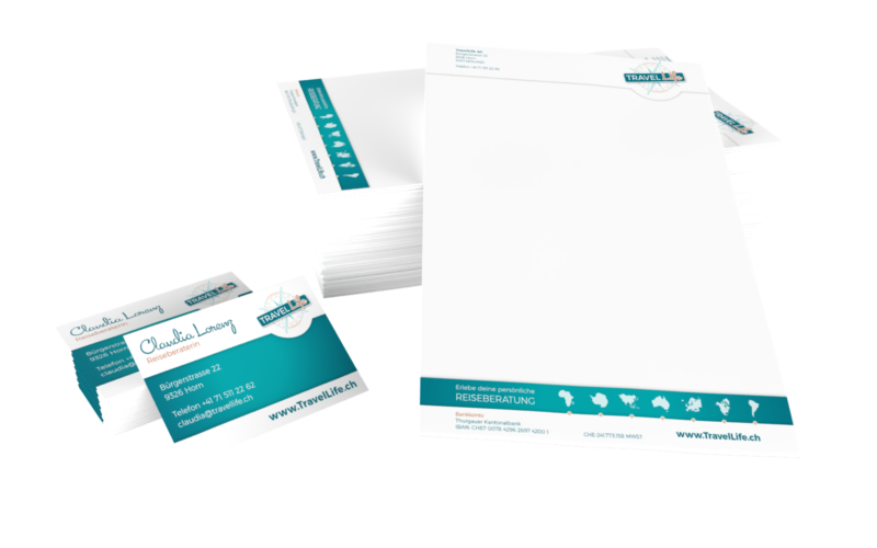 • Geschäftsdrucksachen (Visitenkarten, Couverts und Briefbogen)